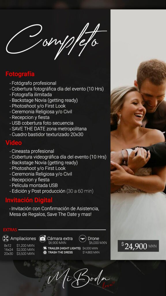 Cada historia de amor es única, descubre el paquete ideal para revivir tu gran día una y otra vez, con imágenes que hablan desde el corazón.